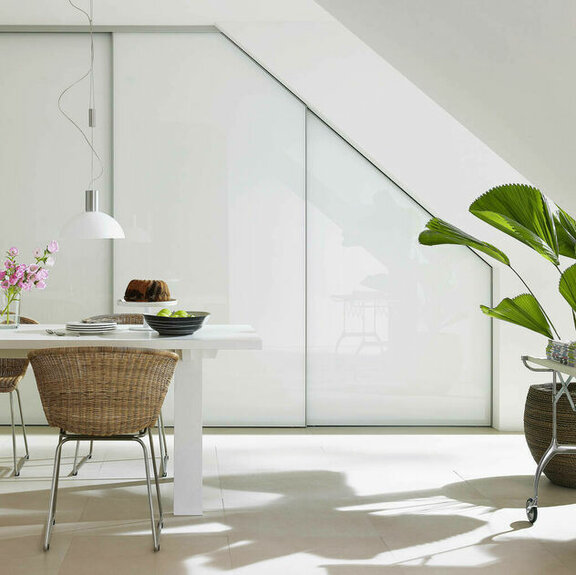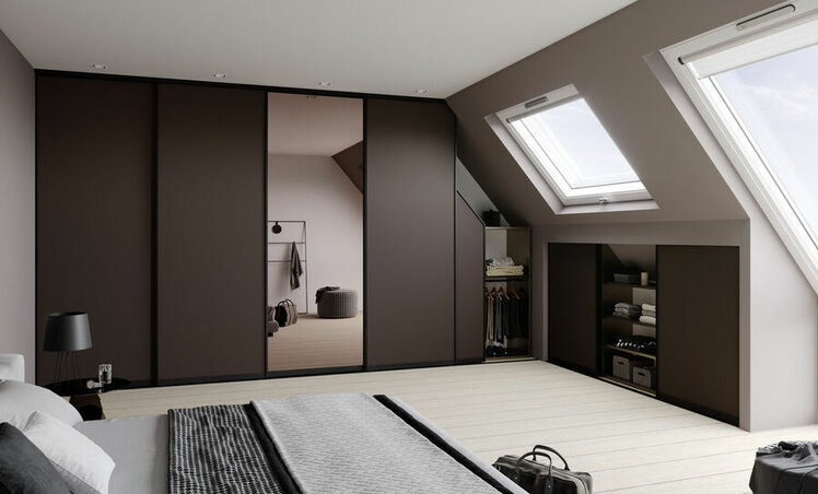 In dieser Form fügt sich ein Einbauschrank unter Dachschrägen optimal in seine Umgebung ein. Dadurch wirkt er niemals beengend, sondern immer als Teil des Ganzen.