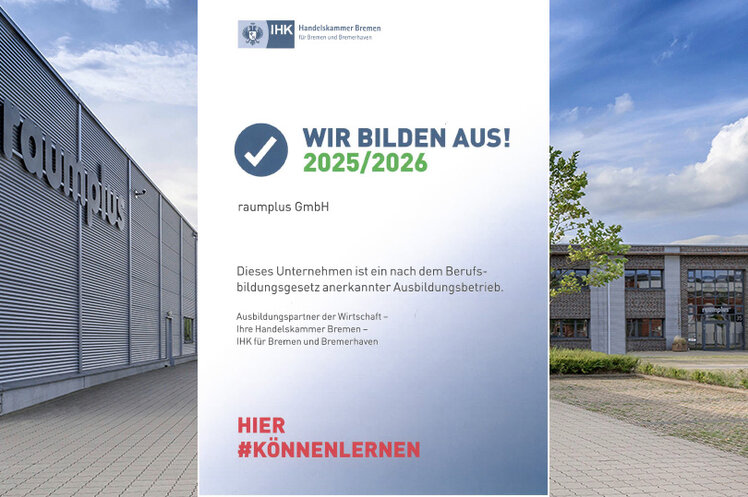 Wir geben unser Know-how gern im kaufmännischen Bereich als Kaufmann für Groß- und Außenhandelsmanagement (m/w/d) und im gewerblichen Bereich als Holzmechaniker, Fachkraft für Lagerlogistik, Fachlagerist und als Mediengestalter (m/w/d) weiter. Wir bieten Auszubildenden neben spannenden Einsatzbereichen in unserem international agierenden Unternehmen den Rückhalt eines tollen Teams, das unser freundliches und aufgeschlossenes Betriebsklima prägt. Darauf gibt es sogar Brief und Siegel, denn raumplus ist seit Jahren von der Handelskammer Bremen als »nach dem Berufsbildungsgesetz anerkannter Ausbildungsbetrieb« zertifiziert. Wir finden: die schönste Form, in die Zukunft zu investieren.